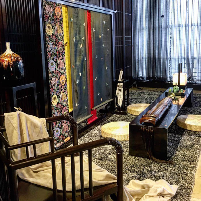 本屆文博會上,由江蘇愛濤文化聯手福佑設計共同策劃的“創意客廳”美學生活館驚艷亮相,獲得參觀領導和業內專家的高度好評、吸引眾多觀眾并饒有興趣地洽談需求個性定制。空間陳設深入挖掘獨特鮮明的中華文化、江蘇文化,提煉出一種呼喚性的人文情懷,貼近文博會“突出文化驅動、塑造城市靈魂”的主題。作品運用多種非遺手工技藝,最大化地彰顯造物品質和造境品格,注重文化創意產品藝術品位和經濟效益相互依托的重要性,締造走進生活、時尚百變的雅致文化空間。