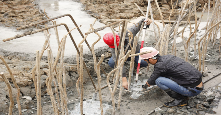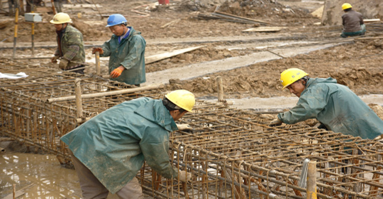 愛濤文化創(chuàng)意中心項目部對進(jìn)度的高度重視,只要有工作面,無論雨下多大,現(xiàn)場都不停工,工人們冒著大雨,穿著雨衣雨褲綁扎鋼筋、支模板等,在這種條件下硬是澆筑了第一道支撐的70%工作量。