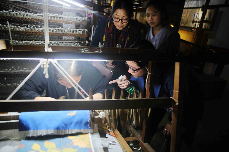宋錦傳統(tǒng)織造工藝與緙絲技藝,精湛的手工和精美的紋案,讓每一個(gè)參觀者嘆為觀止。